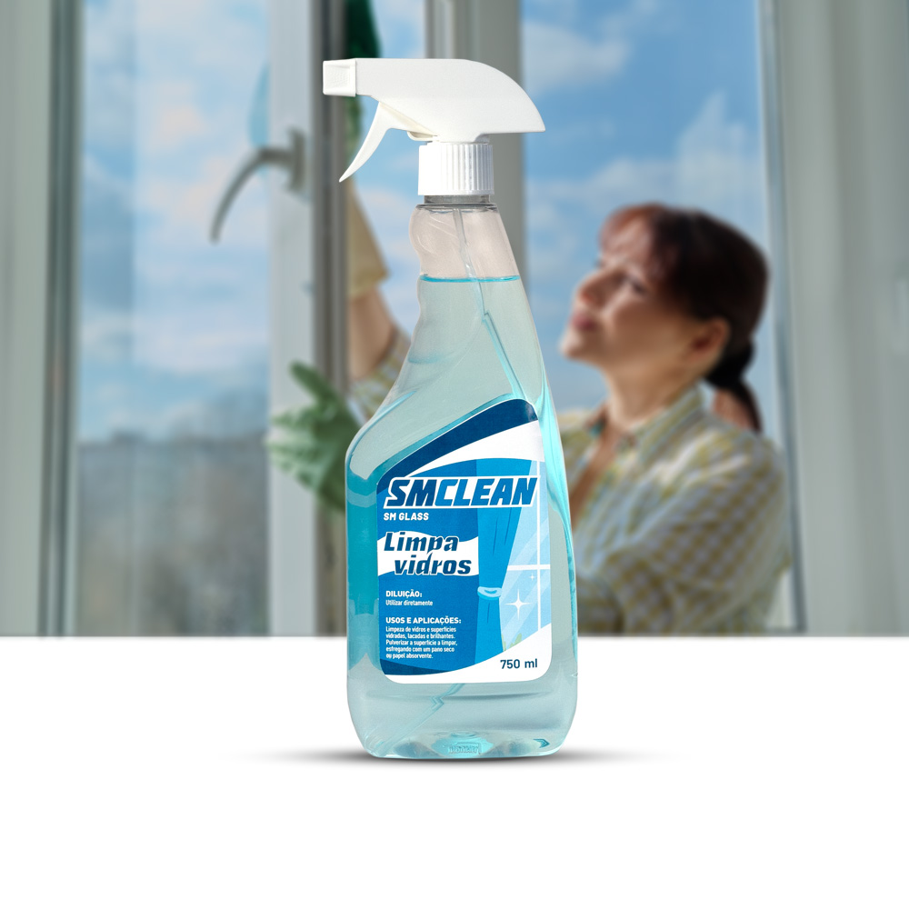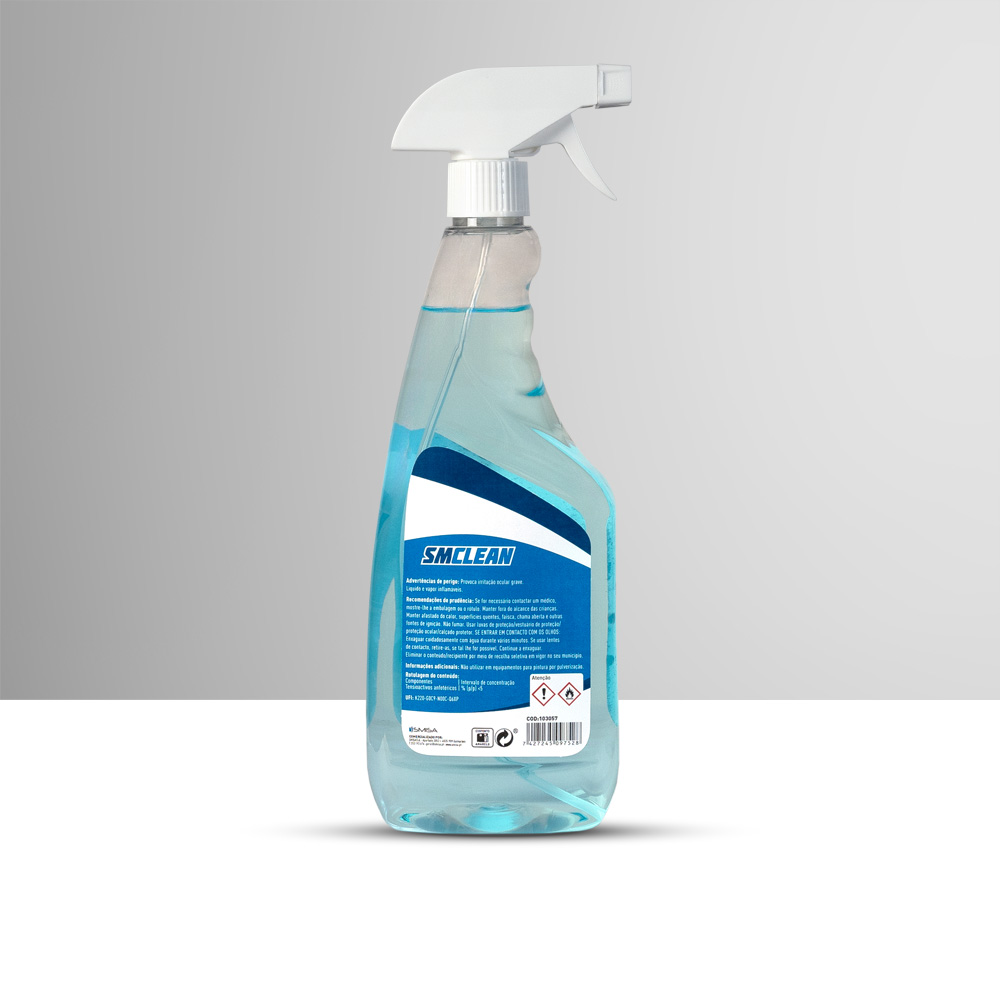 Para limpeza de vidros e superfícies vidradas, lacadas e brilhantes. Pulverizar a superfície a limpar, esfregando com um pano seco ou papel absorvente.